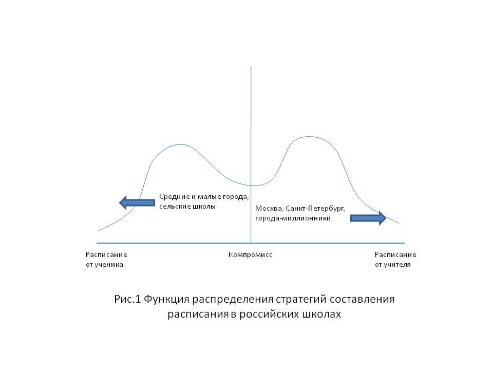 Если представить условную шкалу, иллюстрирующую изменение баланса интересов в ту или иную сторону и применительно к разным регионам, то функция распределения стратегий составления расписаний будет иметь примерно такой вид (Рис.1).