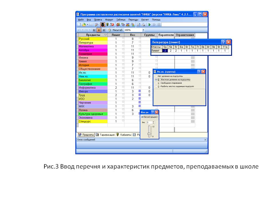 Далее отредактировали список преподаваемых предметов. Программа при поставке комплектуется файлом-шаблоном, который имеет стандартный перечень дисциплин. В данном случае к нему пришлось добавить такие предметы, как второй иностранный язык (немецкий), культура здоровья, логика и спецкурс (Рис.3).