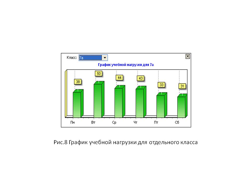 Тут завуч вспомнила, что в прежней программе у нее была функция отображения графика изменения нагрузки в классах по дням недели. Оказалось, что в программе «НИКА» подобная функция также присутствует (Рис.8).